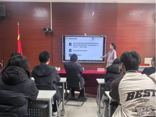 会上,两位老师首先向顺利通过初试的同学们表示热烈祝贺。董萍老师详细梳理了2026年考研复试关键时间节点,提醒同学们密切关注报考院校复试通知与调剂信息发布,她围绕复试考察内容、高效备考策略、线下复试材料清单、线上调剂操作规范展开讲解。
