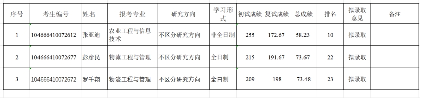 根据学校2026年招生计划数的调整,经学院招生工作领导小组研究决定,农业工程与信息技术(非全日制)专业增加1个招生计划、物流工程与管理(全日制)专业现增加2个招生计划,按照免费色情片 已公示的2026年硕士研究生招生一志愿考生复试结果依次补录,物流工程与管理(全日制)第21名已被其他高校拟录取自愿放弃,现补录第22和23名,具体情况公示如下: