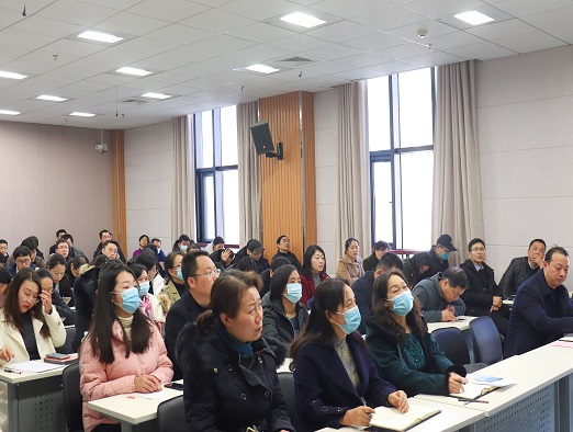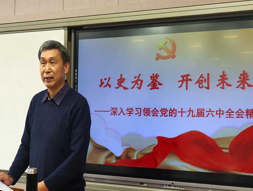 党委书记马新明在繁塔楼B309为全院教师宣讲十九届六中全会精神。学院班子成员及全体教职工参加宣讲会。
