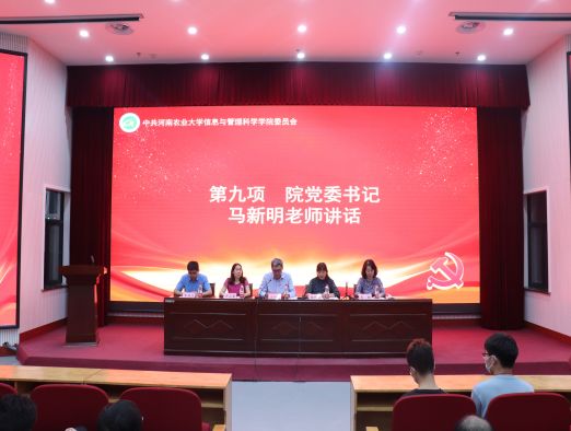 本网讯(通讯员 张玥 苑亚茹)6月9日,学院在龙子湖校区教学楼大教室一举行“学党史,做模范,‘信’心向党”七一表彰暨新党员入党宣誓大会。院党委委员、全体师生党员共同参加会议。本次大会由院党委副书记张利军主持。
