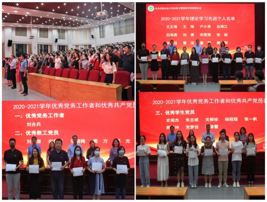 新党员名单》。伴随着欢快的乐曲声,院领导为受表彰的优秀教职工党员、优秀学生党员和理论学习先进个人颁发荣誉证书。