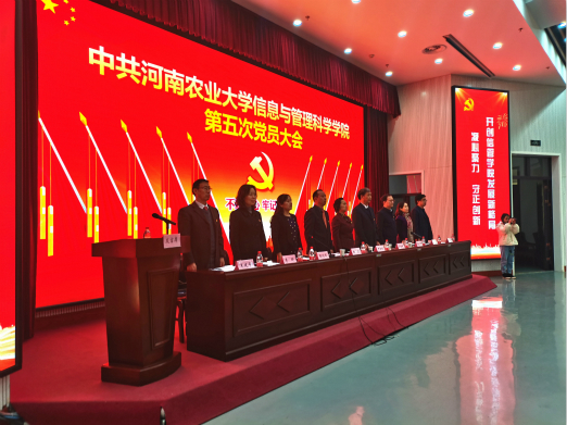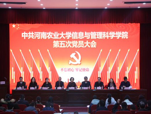 第五次党员大会在龙子湖校区教学楼大教室一举行。副校长尹新明同志、校党委组织部副部长冯晖同志莅临指导,学院师生正式党员142人、预备党员78人参加了大会。