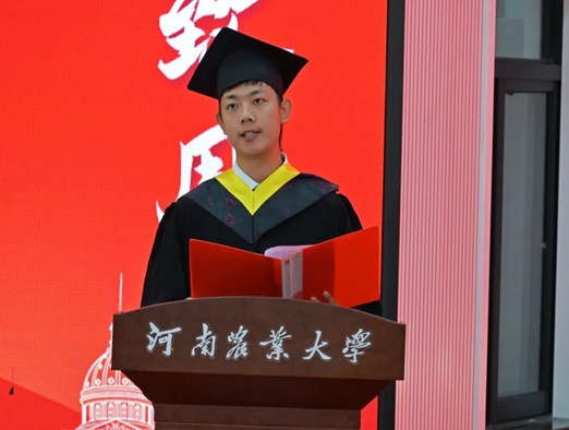 教师代表信计系马巧云老师深情寄语毕业生们,希望大家永葆赤子之心、热爱之心、好学之心、敬畏之心,坚定理想信念,以农大人的担当精神勇敢地走出校园,去创造属于自己的辉煌。