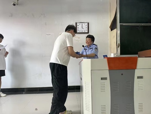 期间,尹警官与在场学生进行了防诈互动,通过反诈小知识问答等环节,对答题优秀的同学赠予了小礼物。