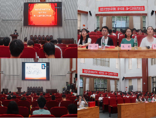于龙子湖校区召开第十三届学生代表大会,学院团委老师出席会议,各年级学生代表参加会议。本次会议由学生会主席王远峥主持。