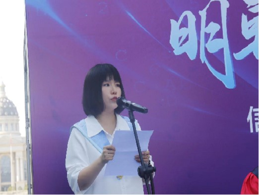 教师代表计科系郭伟老师发言,深情叮嘱同学们无论顺境逆境都要怀揣梦想,充满力量,勇毅前行。在未来的日子里再接再厉,勇担时代责任,不负恩师教诲,不负母校栽培。