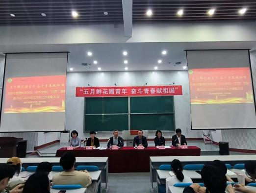 于龙子湖校区繁塔楼大教室2举行“五月鲜花赠青年,奋斗青春献祖国”五四表彰暨学生工作表彰大会。学院领导班子全体成员、团委各年级辅导员及受表彰学生代表参加本次会议。大会由院党委副书记蔡镔主持。