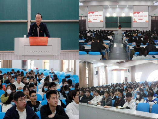 本网讯(通讯员 郭潇)为深入学习贯彻习近平新时代中国特色社会主义思想和党的二十大精神,进一步加强学院学生思想政治教育,引导大学生启航新学期,奋进新征程。2月28日下午,学院组织进行了2023年春季学期“开学第一课”主题教育活动。院长陈振以《挺膺担当,书写“强国有我”青春画卷》为题进行授课。院团委老师及全体学生参加本次授课。