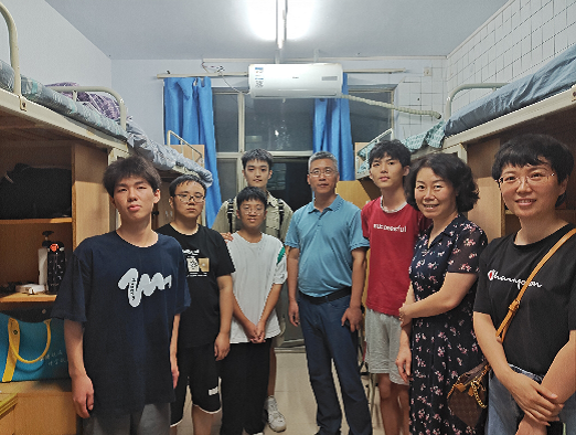 当天,院党委书记苏楠,副书记蔡镔,副院长李晔在23级辅导员张玥老师的陪同下,深入宿舍看望慰问新生。苏楠针对来校体会,住宿环境,学业打算,未来规划等方面内容与新生展开交流,勉励同学们珍惜大学时光,写好人生答卷。蔡镔鼓励学生军训期间要在注意身体的前提下圆满完成军训任务,不负时光,不负韶华。