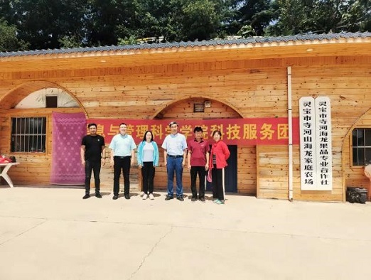 本网讯(通讯员 汪强)2022年8月18日,学院党委书记马新明教授、户小英副院长、河南省科技特派员汪强副教授一行赴三门峡灵宝市寺河山苹果小镇、寺河山海龙家庭农场、寺河山海龙果品专业合作社、灵宝昌盛宝菇集团等地,针对数字乡村、农业生产监测、农业信息化、农产品电商销售等开展科技服务与技术指导。