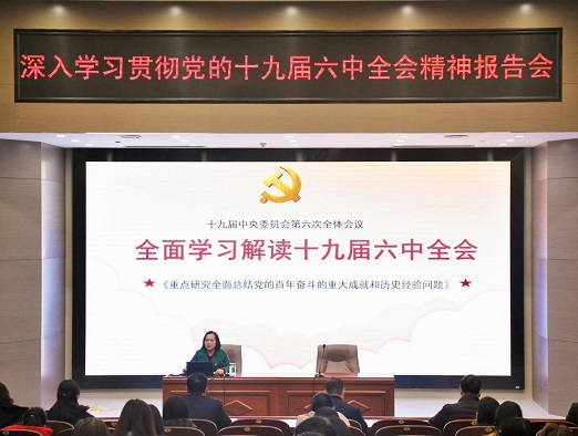 师生宣讲十九届六中全会精神,学院全体教职工及部分学生党员代表参加了宣讲会。