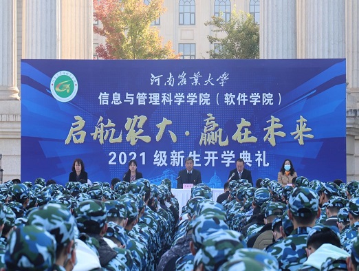 在龙子湖校区教学楼C座西广场举行“启航农大,赢在未来”2021级新生开学典礼。院党委书记马新明、院长陈振出席典礼并讲话,副院长户小英、李晔、各系室主任、辅导员老师、2021级班主任及全体新生参加典礼。典礼由院党委副书记张利军主持。