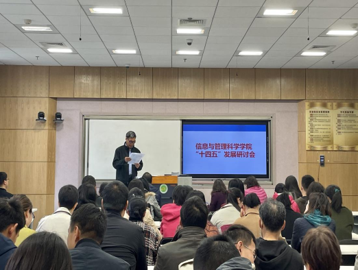 本网讯(通讯员 郑光)为了进一步凝练学院发展目标,发动教职工群策群力,编制出一个高质量、高标准、切合学院未来发展的“十四五”规划。4月23日下午,学院于龙子湖校区繁塔楼B309室召开“十四五”发展研讨会,学院全体教师参加,会议由院党委书记马新明主持。