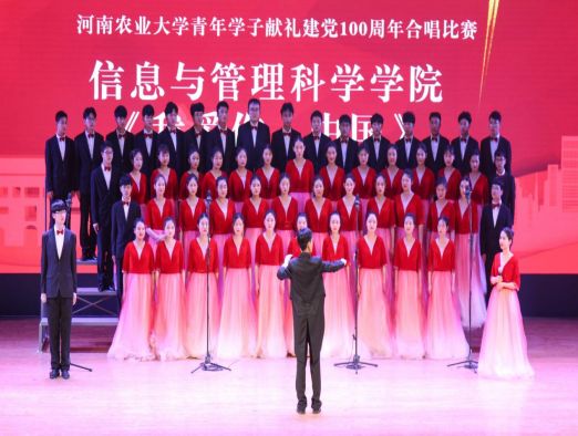 学子以一首《我爱你,中国》歌颂了党的百年奋斗历程,同学们用慷慨激昂、真情流露的歌声打动了现场的每一位评委和观众。比赛结束后,学院领队老师与合唱团同学合影留念,鼓励同学们在新时代的号召下不忘初心、砥砺前行,用实际行动为早日实现伟大复兴中国梦贡献自己的青春力量。