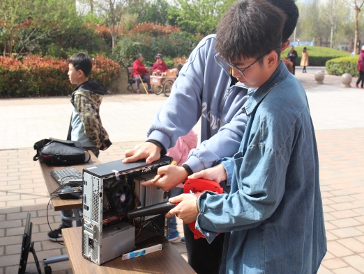 在社区工作人员的安排下,电脑120团队成员摆好桌椅、撑起帐篷,布置好活动场地。活动开始后,同学们为前来维修的居民解决了电脑清灰、网线安装、电脑重启、系统重装等一系列问题,遇到不方便带到维修点的台式电脑问题时,同学们上门为居民进行义务维修,保证为每一位前来寻求帮助的居民妥善解决问题。活动结束后,团队成员仔细核对了每一台受助电脑的维修信息记录,确保没有遗漏和错误,并认真打扫了活动场地。同学们高超的维修技术和细致周到的服务嬴得了生活区居民的高度赞扬。
