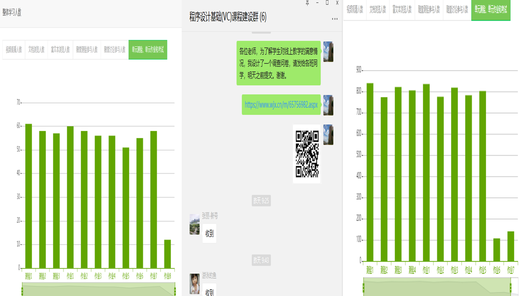 目前,通过前几周的教学数据、教学案例、调查问卷和教学质量自评结果,能证明学生学习进度正常、学习热情高涨、教学互动畅通灵活、线上课堂秩序井然。从课程阶段测验成绩反映出,教学效果同比更优,确保了教学质量不打折。