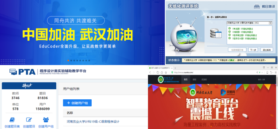 以中国大学MOOC平台和超星学习通平台为主,结合EduCoder、PTA等在线编程实验平台及智慧教育平台、无纸化测评系统等教学资源,辅之以QQ、微信、钉钉等信息技术工具,取长补短融合使用,确保了线上教学正常开展。