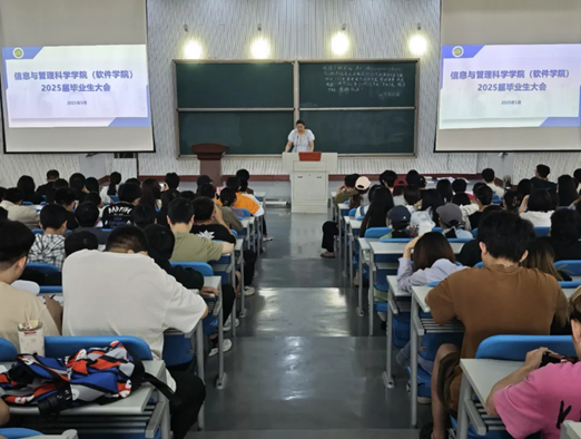 于繁塔楼大教室二召开2025届全体毕业生大会。会议由院团委书记张玥和院团委副书记李艳飞主讲,2025届全体毕业生参加。