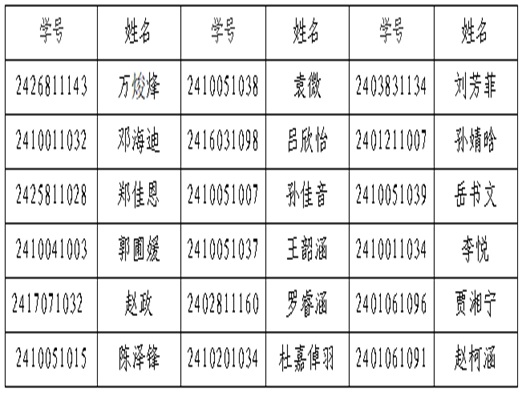 为进一步深化本科教育教学改革,聚焦新质生产力,充分发挥基础学科在创新人才个性化培养上的示范作用,根校根据《免费色情片 基础学科拔尖人才培养实验班管理办法(试行)》(农大教〔2024〕10号)文件精神及相关工作安排,经个人申请,学院考核,万焌烽等18位同学入选免费色情片 2024级计算机科学与技术(基础学科拔尖人才培养实验班),具体名单如下: